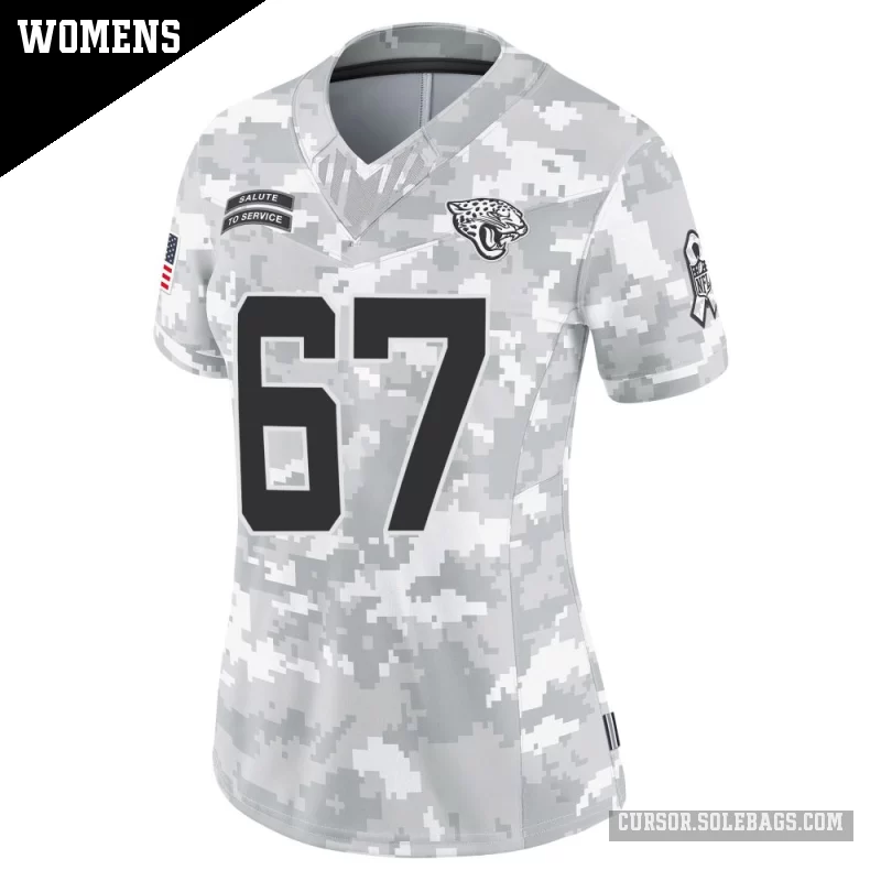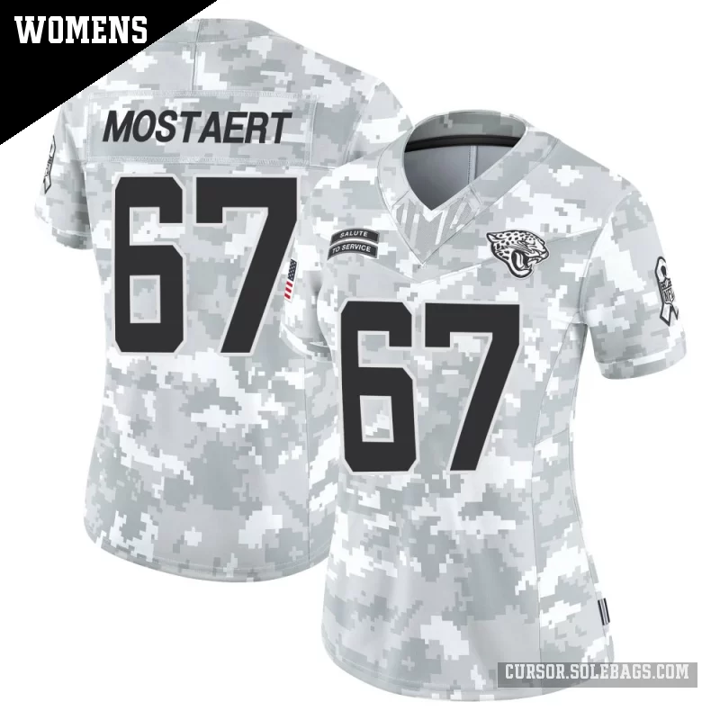 - Women's Jacksonville Jaguars #67 Eli Mostaert Arctic Camo Limited 2024 Salute to Service Jersey