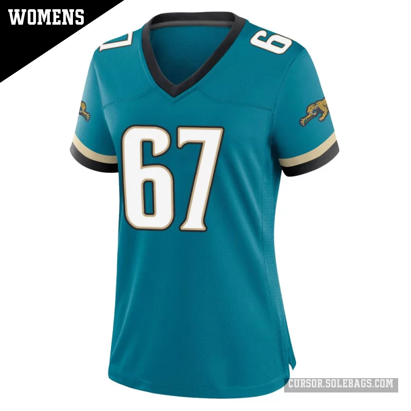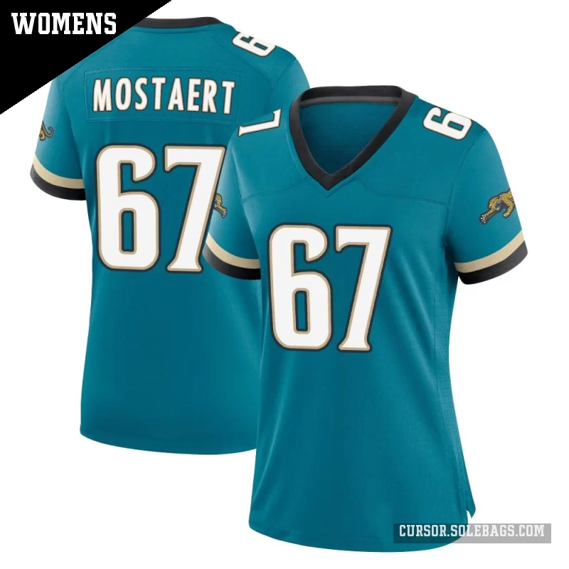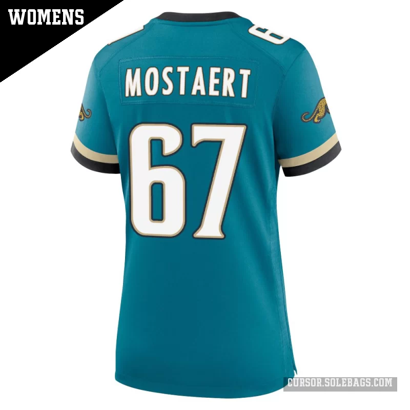 - Women's Jacksonville Jaguars #67 Eli Mostaert Teal Game Prowler Throwback Jersey