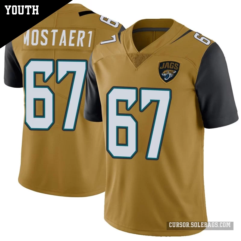 - Youth Jacksonville Jaguars #67 Eli Mostaert Gold Limited Color Rush Vapor Untouchable Jersey
