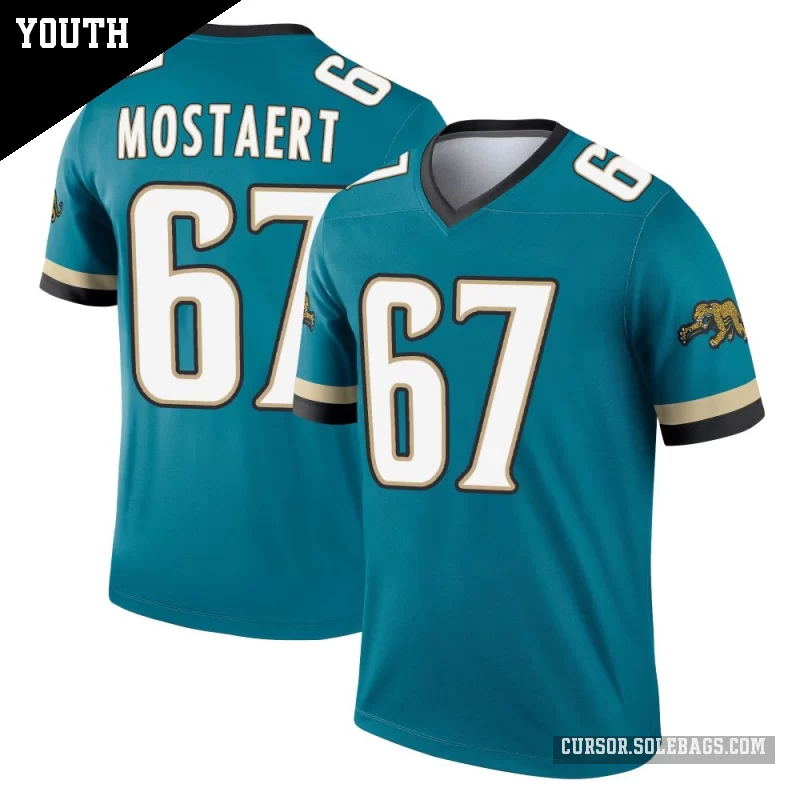 - Youth Jacksonville Jaguars #67 Eli Mostaert Teal Legend Prowler Throwback Jersey