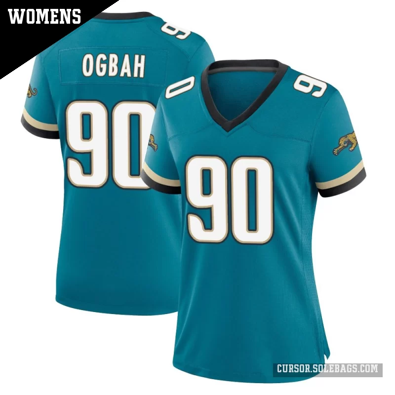 - Women's Jacksonville Jaguars #90 Emmanuel Ogbah Teal Game Prowler Throwback Jersey