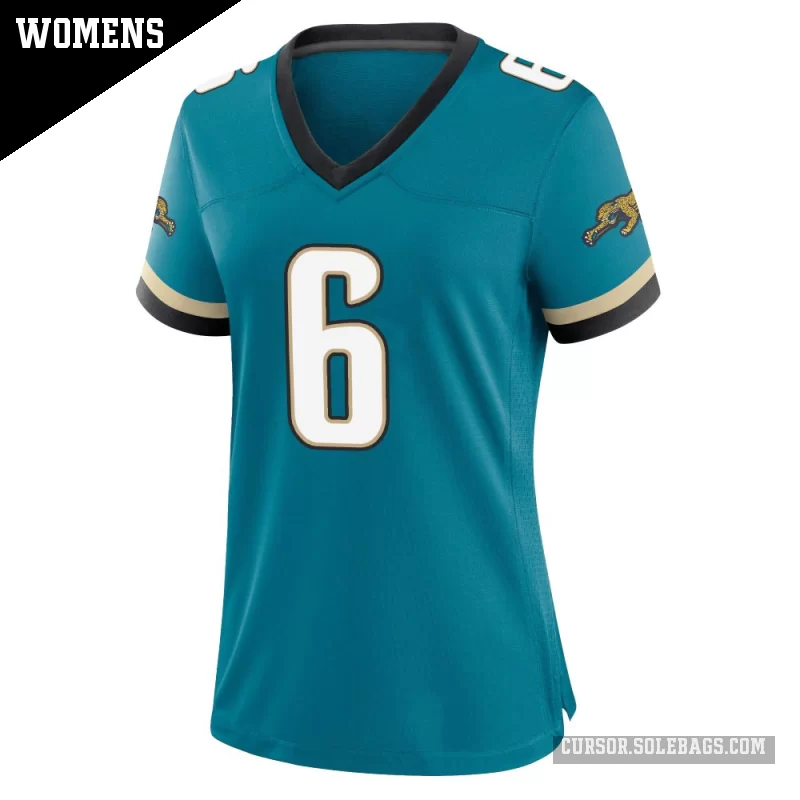 - Women's Jacksonville Jaguars #6 Greg Newsome II Teal Game Prowler Throwback Jersey