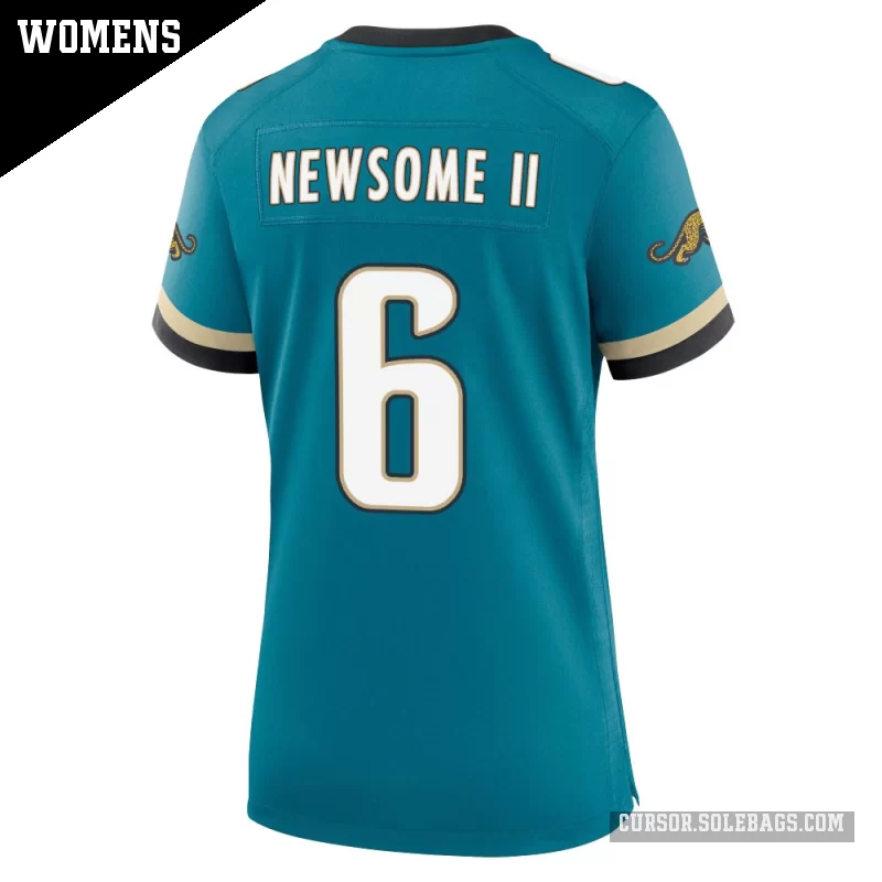 Bring true fan energy to every game with this Women's Jacksonville Jaguars #6 Greg Newsome II Teal Game Prowler Throwback Jersey. Designed for comfort and a flattering silhouette, it's an easy go-to for any game-day outfit.