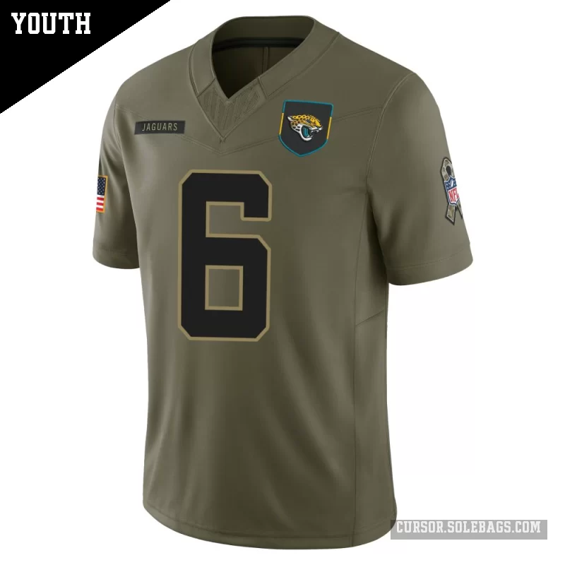 - Youth Jacksonville Jaguars #6 Greg Newsome II Olive Limited 2025 Salute to Service Jersey