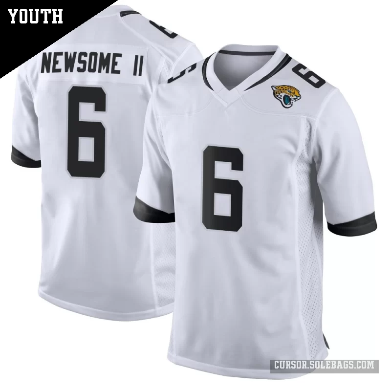 Let young fans feel part of the team with this Youth Jacksonville Jaguars #6 Greg Newsome II White Game Jersey. Durable, comfortable, and full of team spirit, it's great for school, backyard play, and every big game.