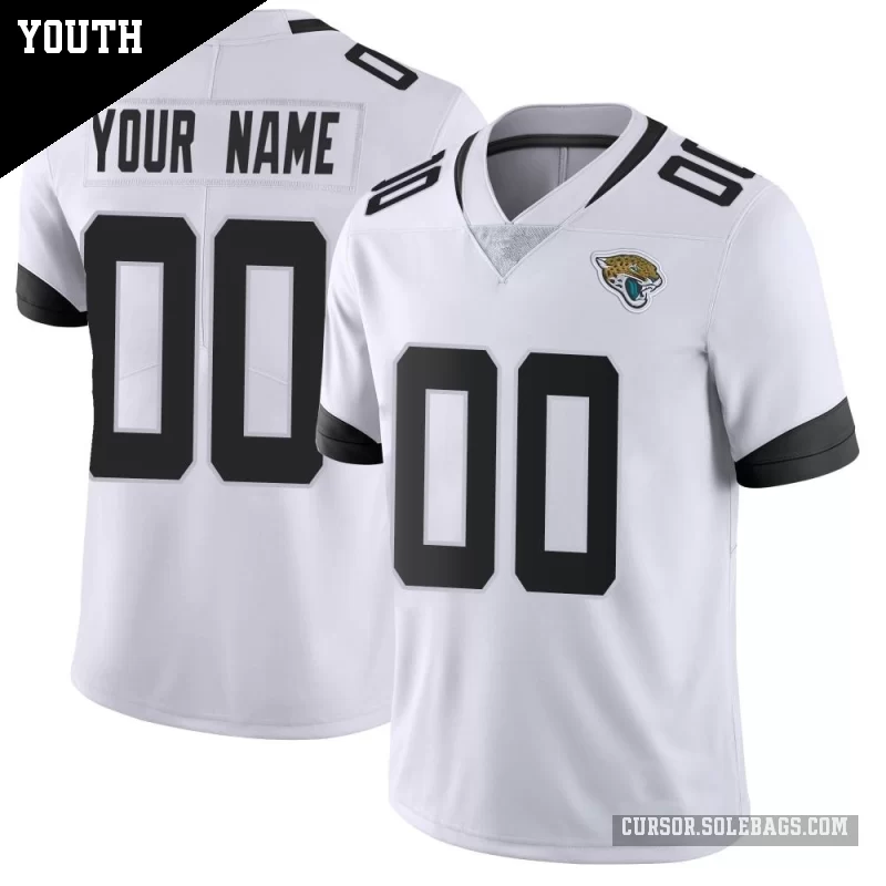 Treat young fans to a more premium feel with this Youth Jacksonville Jaguars #00 Custom White Limited Vapor Untouchable Jersey. Enhanced details and a comfortable fit make it a standout choice for special games, photos, and gifts.