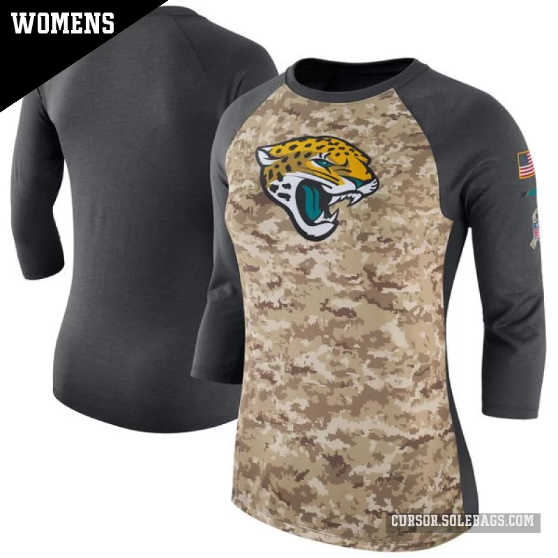 - Women's Jacksonville Jaguars Camo/Charcoal Legend Salute to Service 2017 Three-Quarter Raglan Sleeve T-Shirt