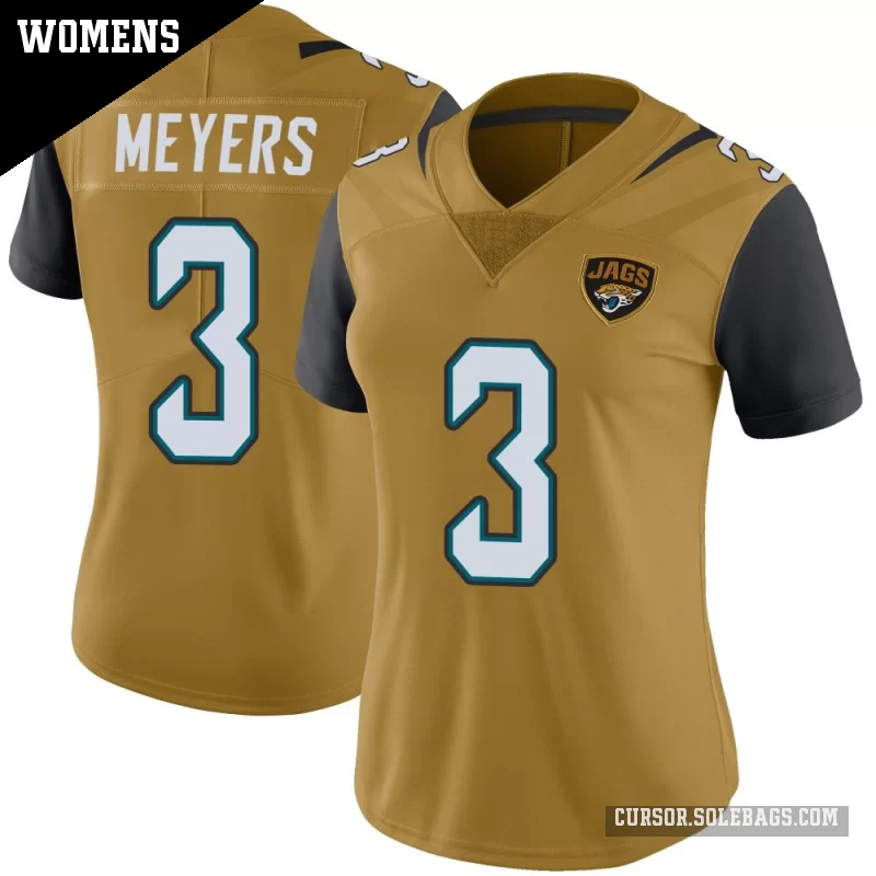 - Women's Jacksonville Jaguars #3 Jakobi Meyers Gold Limited Color Rush Vapor Untouchable Jersey