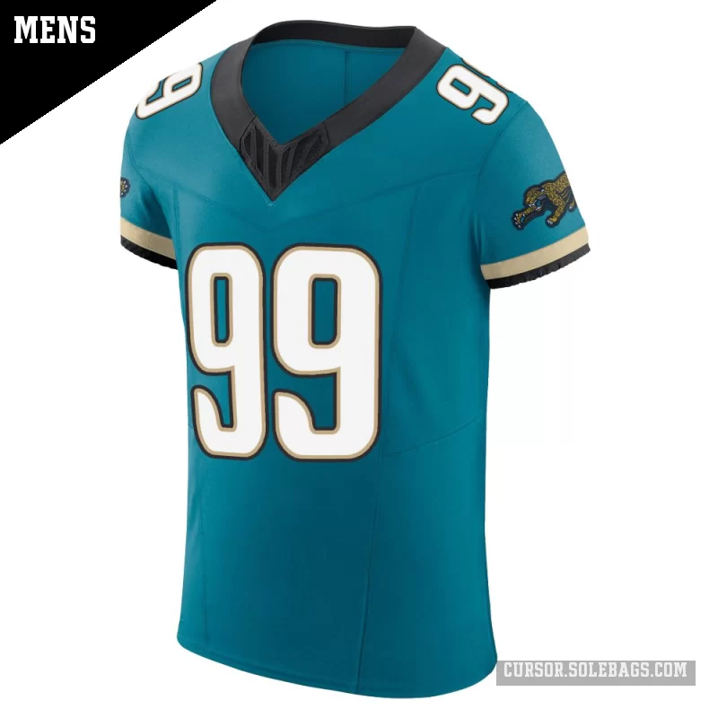 Experience game-day like the pros in this Men's Jacksonville Jaguars #99 James Carpenter Teal Elite Prowler Throwback Vapor F.U.S.E. Jersey. Built with top-tier materials, advanced ventilation, and authentic on-field details, it's the ultimate choice for dedicated collectors and superfans.