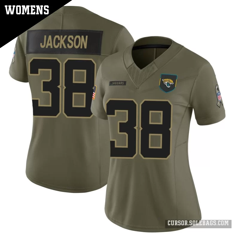 - Women's Jacksonville Jaguars #38 Ja'Quinden Jackson Olive Limited 2025 Salute to Service Jersey
