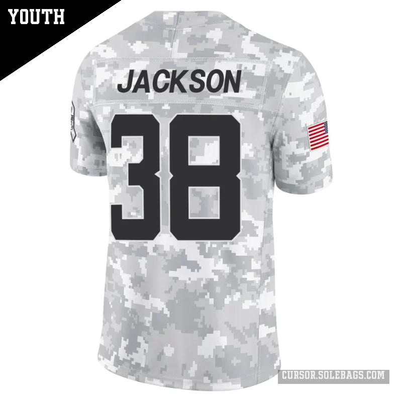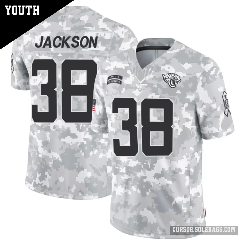 - Youth Jacksonville Jaguars #38 Ja'Quinden Jackson Arctic Camo Limited 2024 Salute to Service Jersey