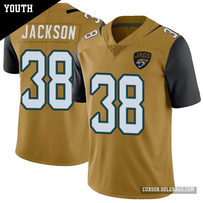 - Youth Jacksonville Jaguars #38 Ja'Quinden Jackson Gold Limited Color Rush Vapor Untouchable Jersey