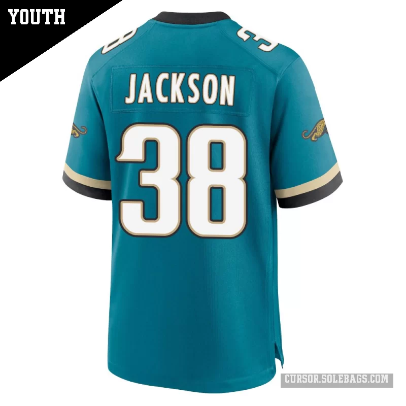 - Youth Jacksonville Jaguars #38 Ja'Quinden Jackson Teal Game Prowler Throwback Jersey