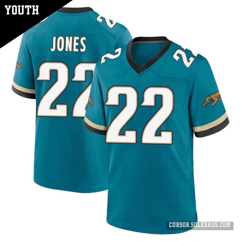 - Youth Jacksonville Jaguars #22 Jarrian Jones Teal Game Prowler Throwback Jersey
