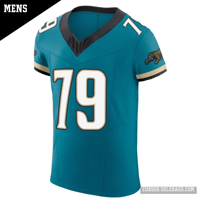 Experience game-day like the pros in this Men's Jacksonville Jaguars #79 Jerome Carvin Teal Elite Prowler Throwback Vapor F.U.S.E. Jersey. Built with top-tier materials, advanced ventilation, and authentic on-field details, it's the ultimate choice for dedicated collectors and superfans.