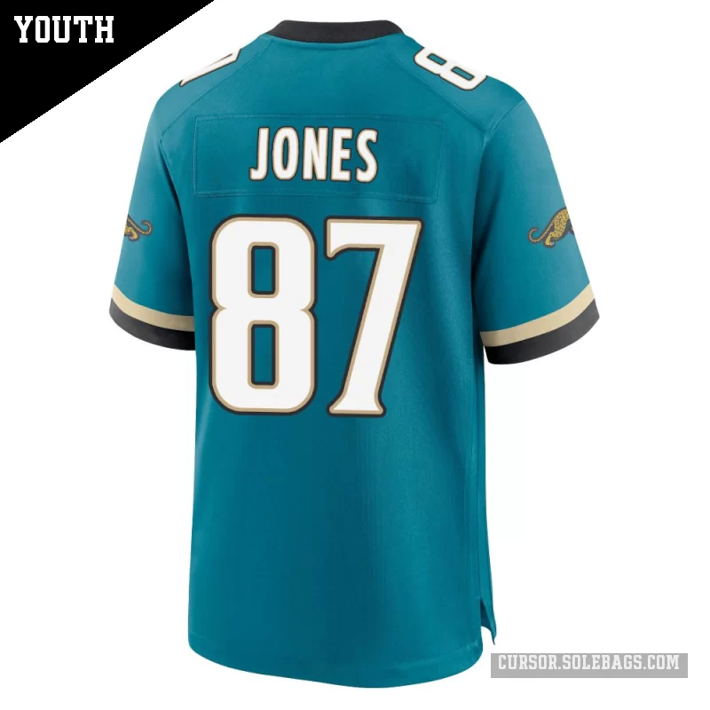 - Youth Jacksonville Jaguars #87 J.J. Jones Teal Game Prowler Throwback Jersey