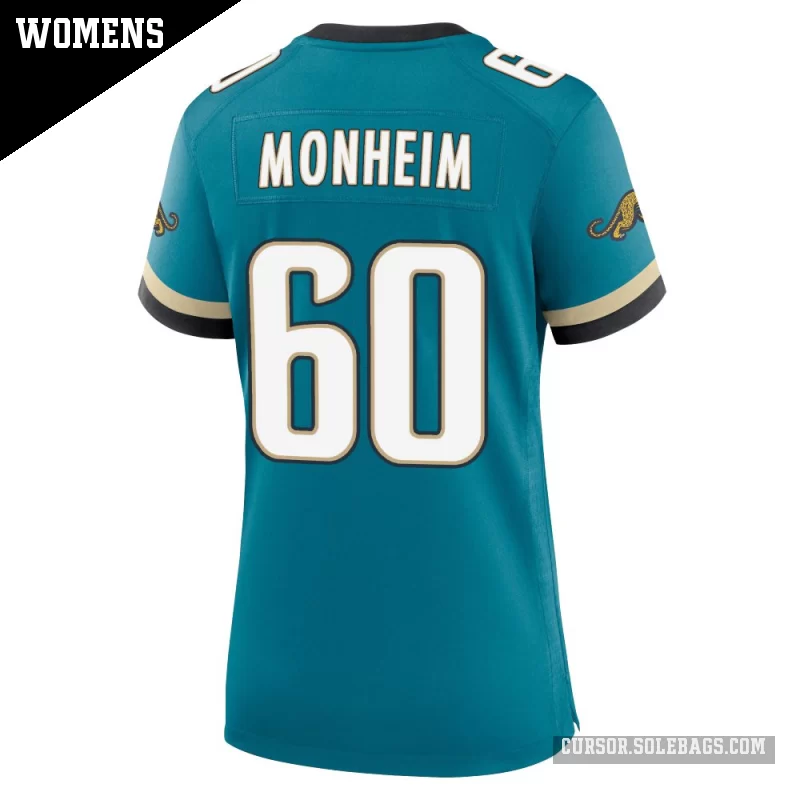- Women's Jacksonville Jaguars #60 Jonah Monheim Teal Game Prowler Throwback Jersey
