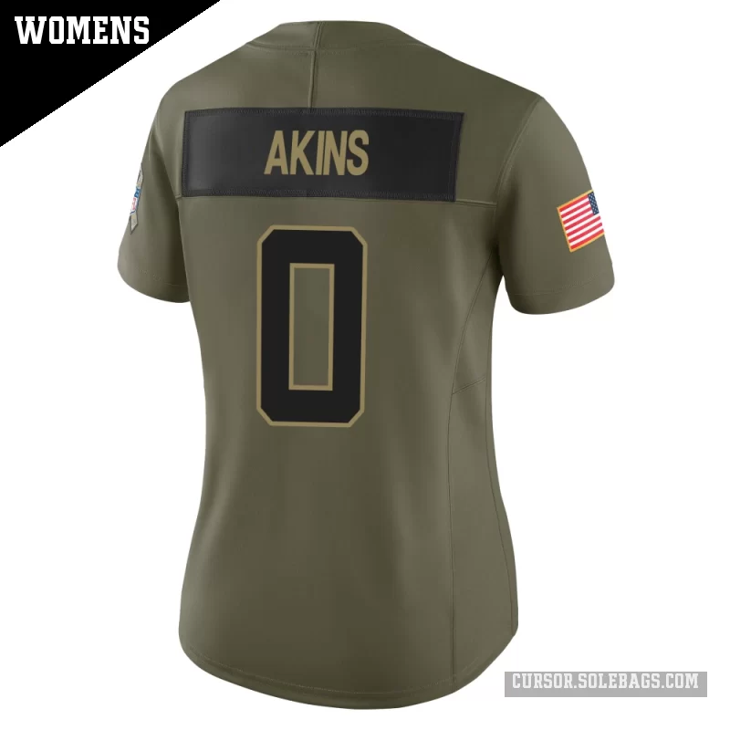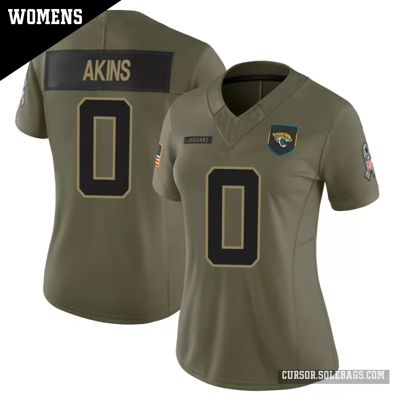 - Women's Jacksonville Jaguars #0 Jordan Akins Olive Limited 2025 Salute to Service Jersey