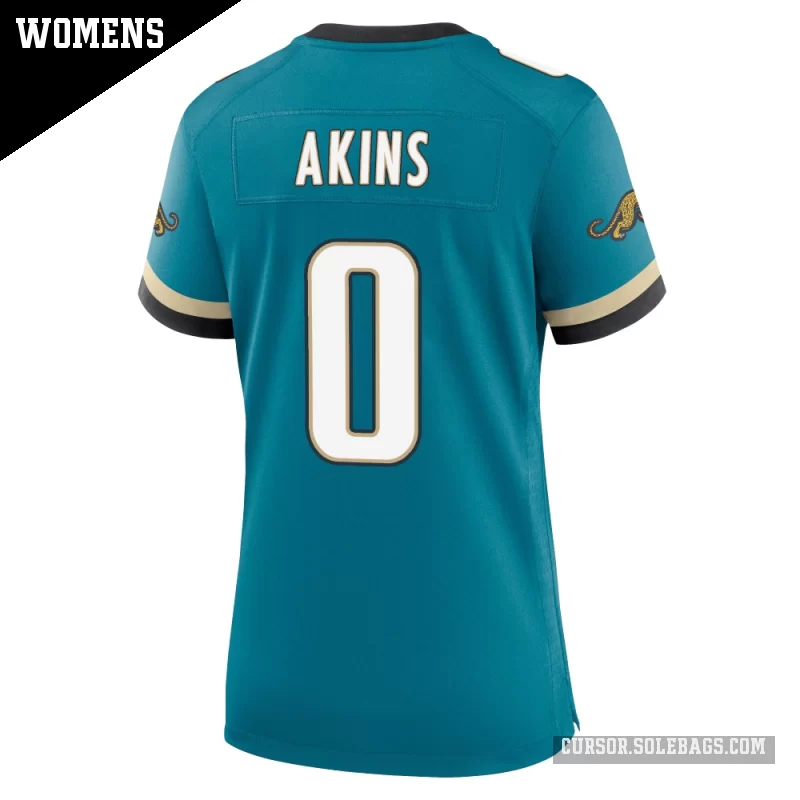 - Women's Jacksonville Jaguars #0 Jordan Akins Teal Game Prowler Throwback Jersey