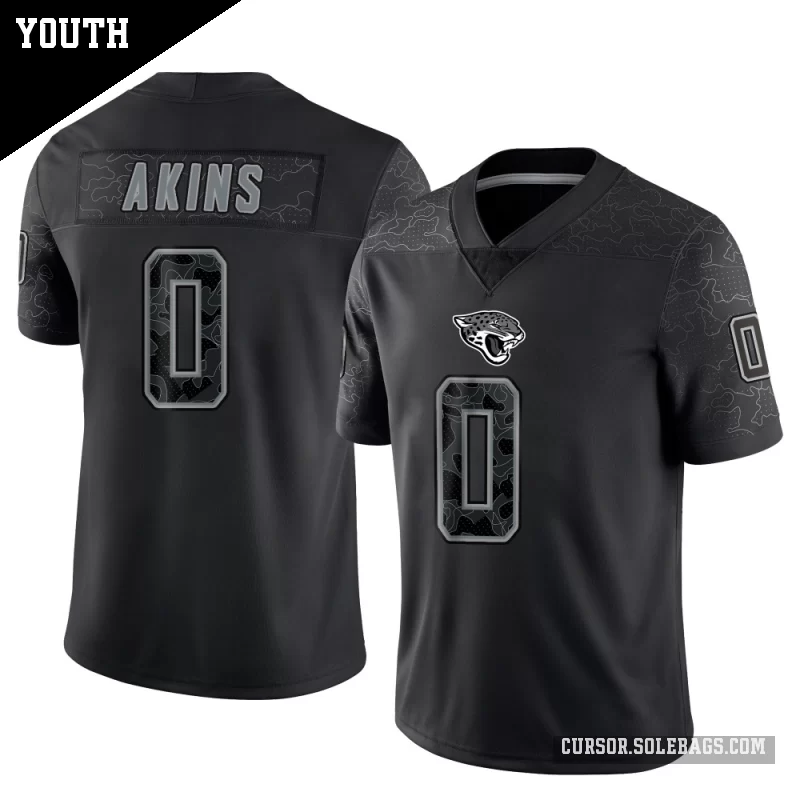 - Youth Jacksonville Jaguars #0 Jordan Akins Black Limited Reflective Jersey