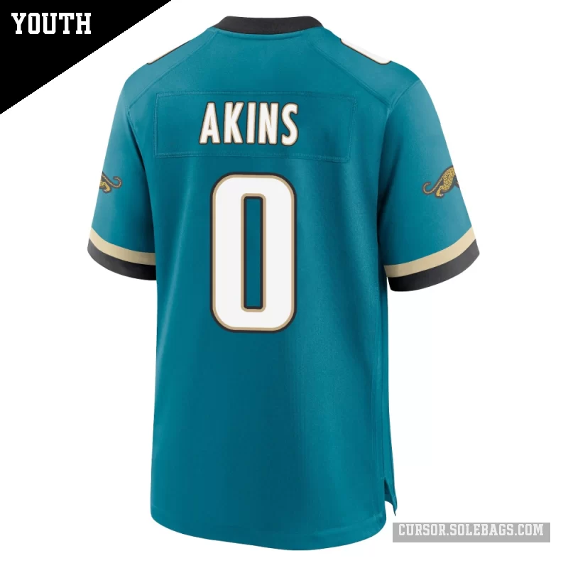 - Youth Jacksonville Jaguars #0 Jordan Akins Teal Game Prowler Throwback Jersey