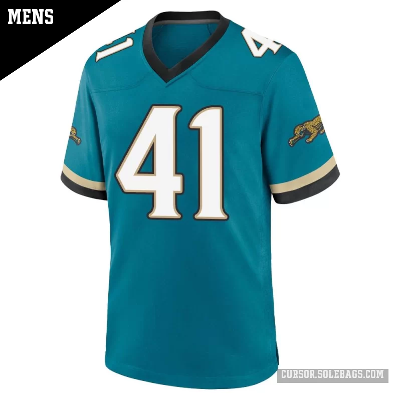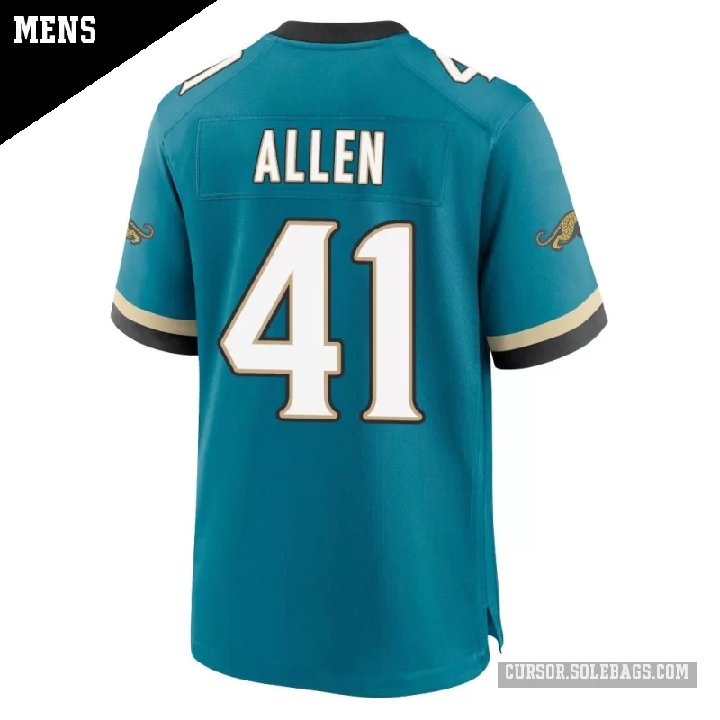 Suit up like a fan favorite in this Men's Jacksonville Jaguars #41 Josh Hines-Allen Teal Game Prowler Throwback Jersey. Featuring graphics and a comfortable everyday fit, it's perfect for cheering in the stands or watching from home.