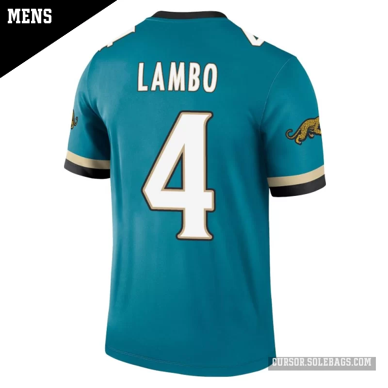 Keep cool and comfortable while backing the Jacksonville Jaguars in this Men's Jacksonville Jaguars #4 Josh Lambo Teal Legend Prowler Throwback Jersey. Lightweight, breathable fabric and bold player graphics make it perfect for warmer game days and everyday wear.