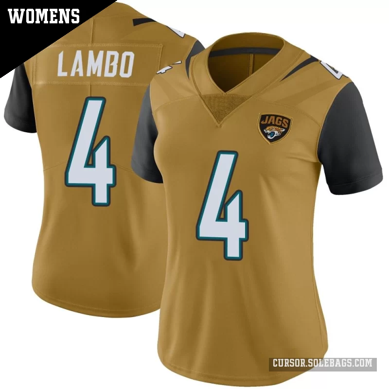 - Women's Jacksonville Jaguars #4 Josh Lambo Gold Limited Color Rush Vapor Untouchable Jersey