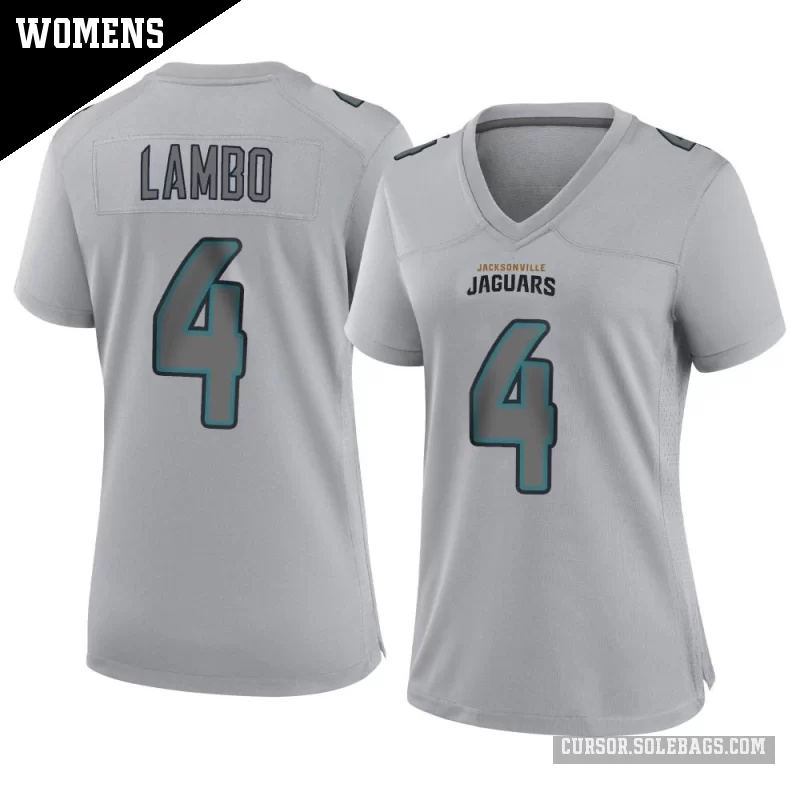 - Women's Jacksonville Jaguars #4 Josh Lambo Gray Game Atmosphere Fashion Jersey