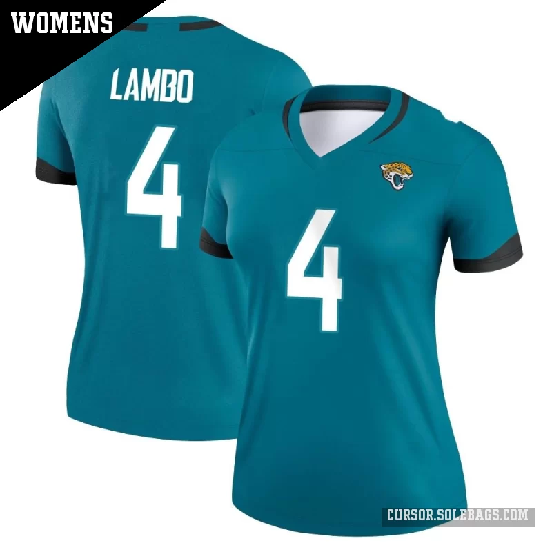 - Women's Jacksonville Jaguars #4 Josh Lambo Teal Legend Jersey
