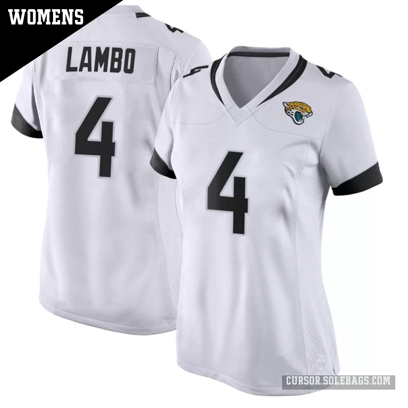 Bring true fan energy to every game with this Women's Jacksonville Jaguars #4 Josh Lambo White Game Jersey. Designed for comfort and a flattering silhouette, it's an easy go-to for any game-day outfit.