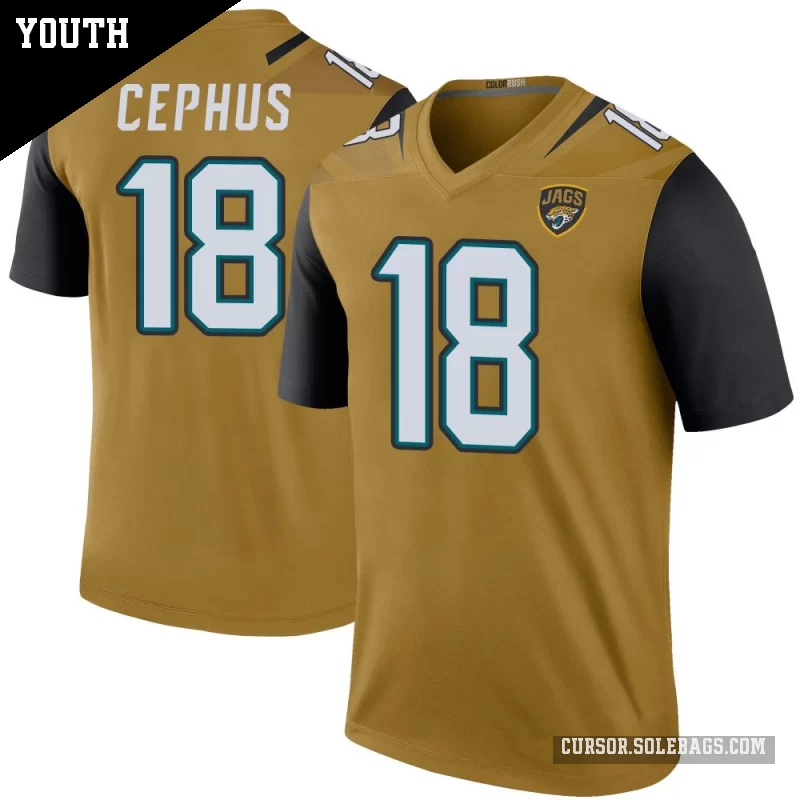 - Youth Jacksonville Jaguars #18 Joshua Cephus Gold Legend Color Rush Bold Jersey