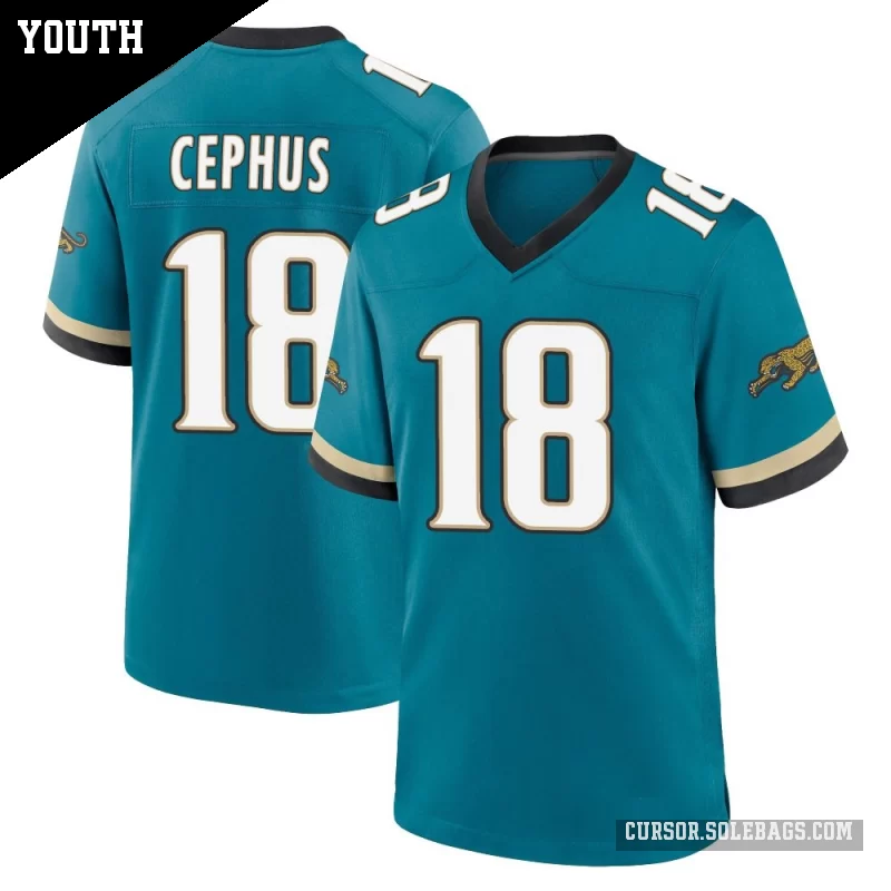 Let young fans feel part of the team with this Youth Jacksonville Jaguars #18 Joshua Cephus Teal Game Prowler Throwback Jersey. Durable, comfortable, and full of team spirit, it's great for school, backyard play, and every big game.