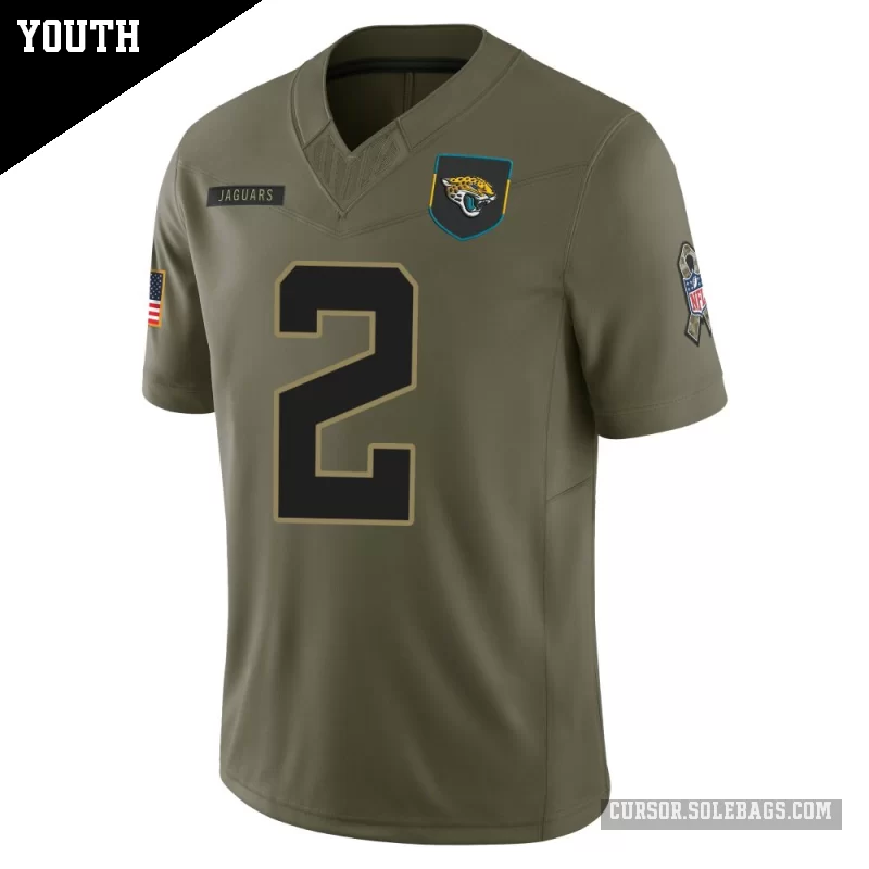 - Youth Jacksonville Jaguars #2 Jourdan Lewis Olive Limited 2025 Salute to Service Jersey