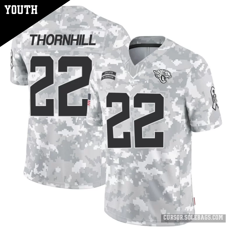 - Youth Jacksonville Jaguars #22 Juan Thornhill Arctic Camo Limited 2024 Salute to Service Jersey