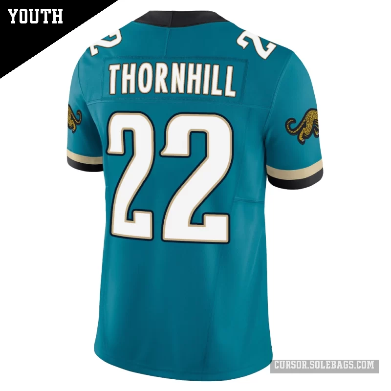 - Youth Jacksonville Jaguars #22 Juan Thornhill Teal Limited Prowler Throwback Vapor F.U.S.E. Jersey