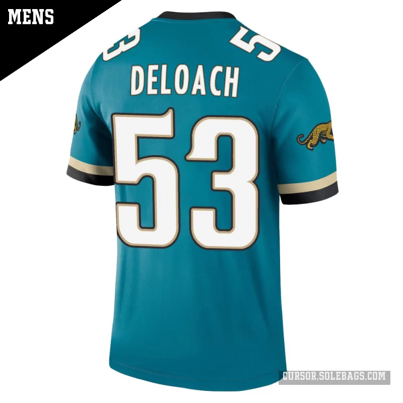 Keep cool and comfortable while backing the Jacksonville Jaguars in this Men's Jacksonville Jaguars #53 Kalen DeLoach Teal Legend Prowler Throwback Jersey. Lightweight, breathable fabric and bold player graphics make it perfect for warmer game days and everyday wear.