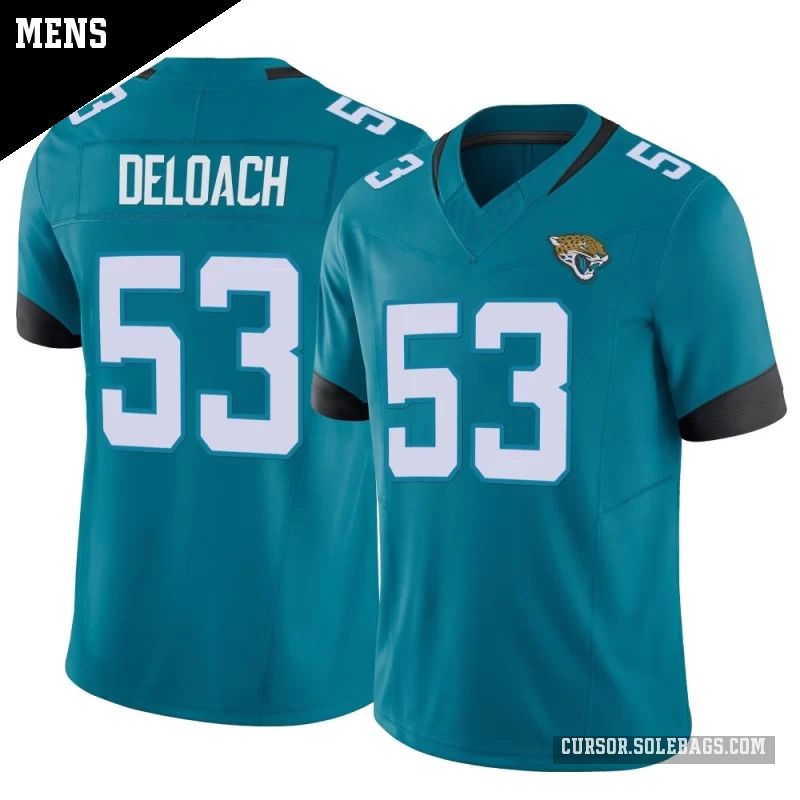 Step up your fan gear with this Men's Jacksonville Jaguars #53 Kalen DeLoach Teal Limited Vapor F.U.S.E. Jersey. Featuring premium fabrics, stitched details, and a tailored fit, it delivers a more authentic on-field look for serious supporters.