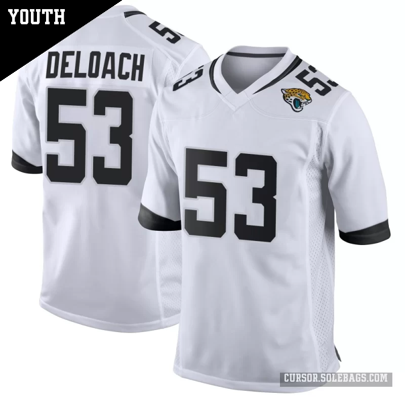 Let young fans feel part of the team with this Youth Jacksonville Jaguars #53 Kalen DeLoach White Game Jersey. Durable, comfortable, and full of team spirit, it's great for school, backyard play, and every big game.