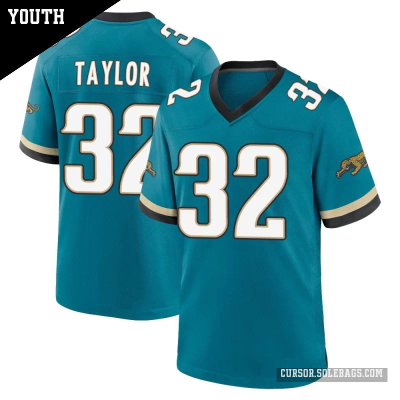 Let young fans feel part of the team with this Youth Jacksonville Jaguars #32 Keith Taylor Teal Game Prowler Throwback Jersey. Durable, comfortable, and full of team spirit, it's great for school, backyard play, and every big game.