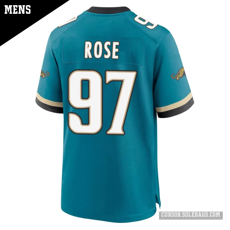 Suit up like a fan favorite in this Men's Jacksonville Jaguars #97 Keivie Rose Teal Game Prowler Throwback Jersey. Featuring graphics and a comfortable everyday fit, it's perfect for cheering in the stands or watching from home.