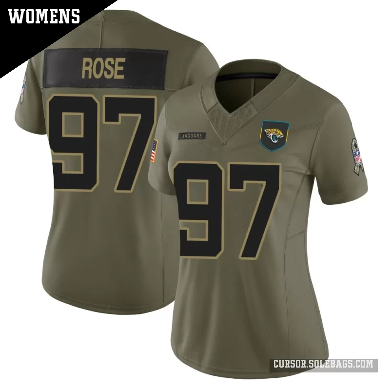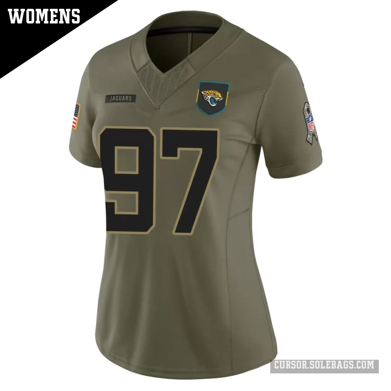 - Women's Jacksonville Jaguars #97 Keivie Rose Olive Limited 2025 Salute to Service Jersey