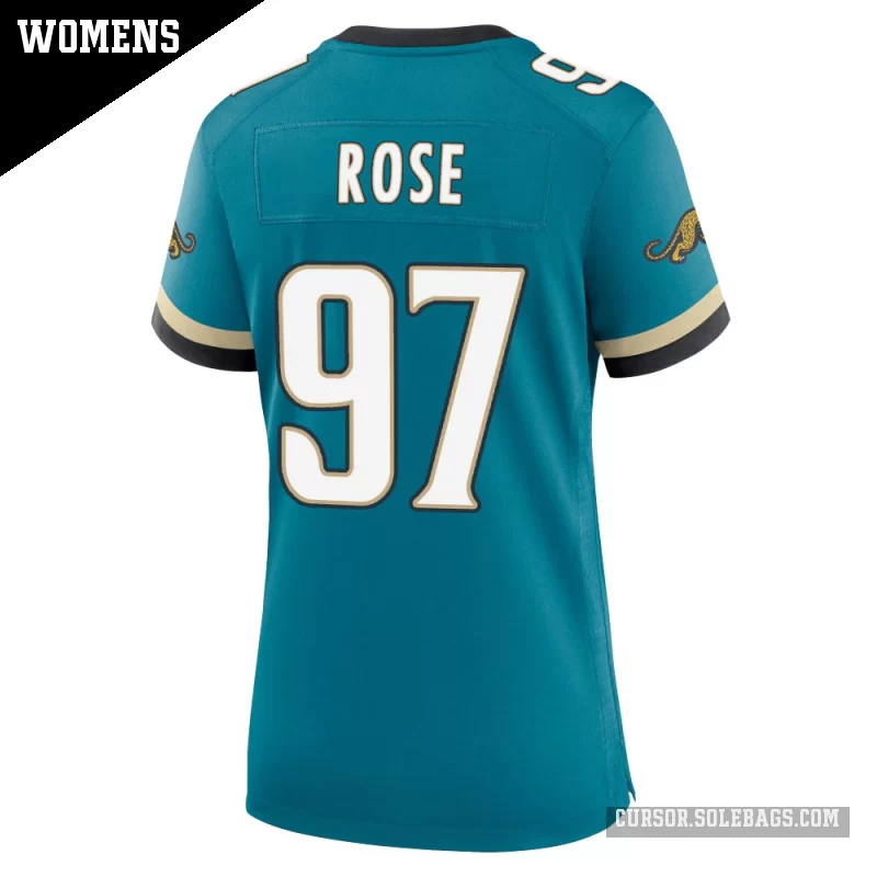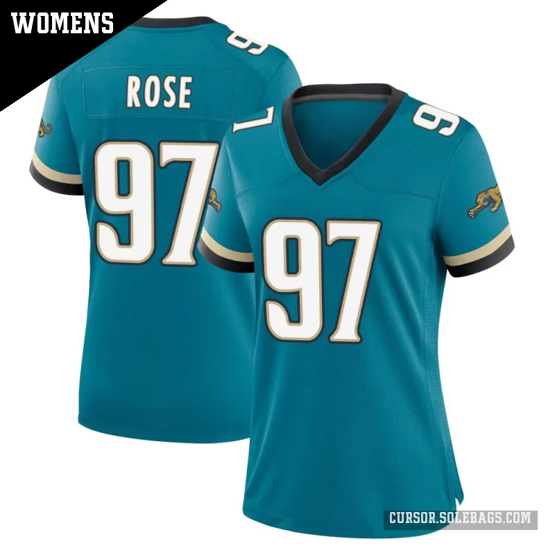 - Women's Jacksonville Jaguars #97 Keivie Rose Teal Game Prowler Throwback Jersey