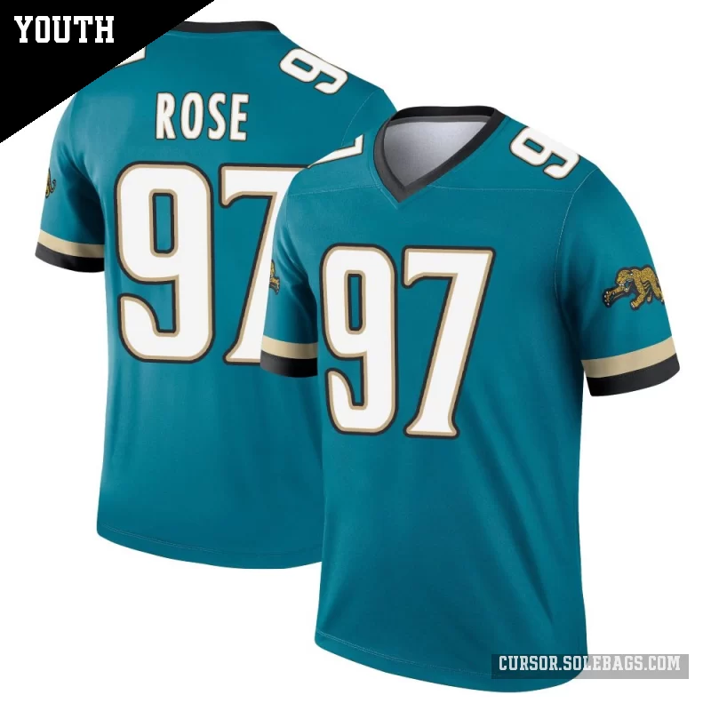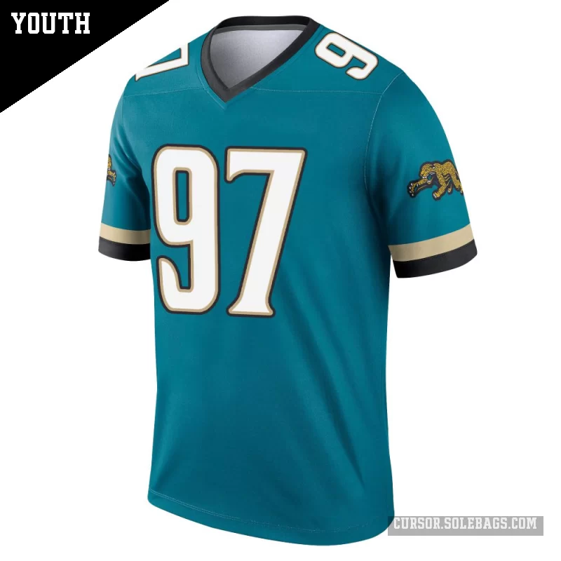 - Youth Jacksonville Jaguars #97 Keivie Rose Teal Legend Prowler Throwback Jersey