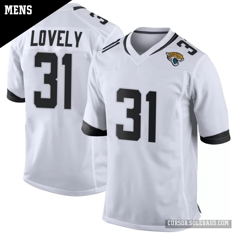 Suit up like a fan favorite in this Men's Jacksonville Jaguars #31 Keni-H Lovely White Game Jersey. Featuring graphics and a comfortable everyday fit, it's perfect for cheering in the stands or watching from home.