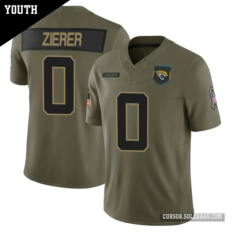 - Youth Jacksonville Jaguars #0 Kilian Zierer Olive Limited 2025 Salute to Service Jersey