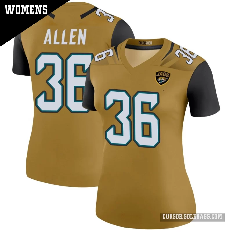 - Women's Jacksonville Jaguars #36 LeQuint Allen Gold Legend Color Rush Bold Jersey