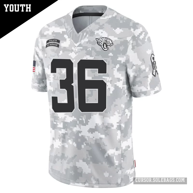 - Youth Jacksonville Jaguars #36 LeQuint Allen Arctic Camo Limited 2024 Salute to Service Jersey