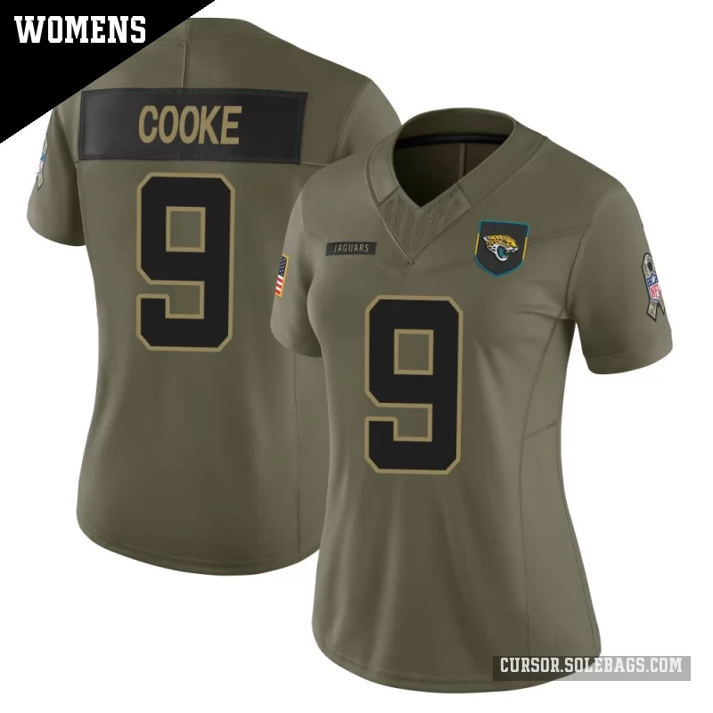 - Women's Jacksonville Jaguars #9 Logan Cooke Olive Limited 2025 Salute to Service Jersey