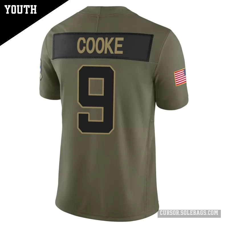 - Youth Jacksonville Jaguars #9 Logan Cooke Olive Limited 2025 Salute to Service Jersey